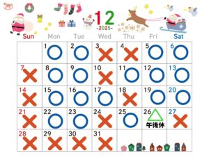 12月の診療日、休診日のお知らせです。