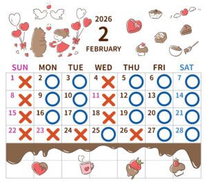 2月の診療日、休診日のお知らせです。
